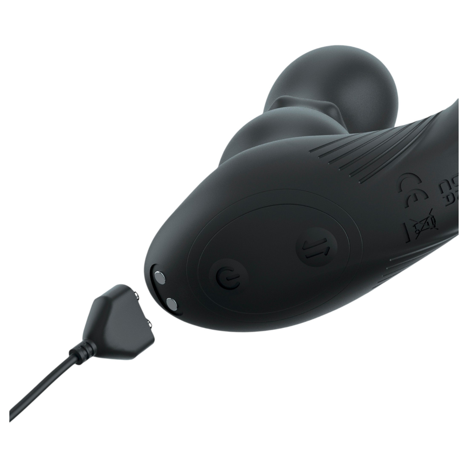 De Slide & Glide Ass-Gasm is speciaal voor mannen ontworpen, zodat anale, prostaat- en perineumstimulatie tegelijkertijd in perfecte harmonie kunnen plaatsvinden. De bewegende parels masseren op en neer het anale kanaal, terwijl de plugkop gerichte P-punt vibratie geeft. Het perineum wordt verwend door een aparte motor met een gedoteerde vibrerende stimulator. De rekbare penis-en-teelbalring versterkt de hardheid en duurzaamheid van de erectie, waardoor de ervaring van alle kanten wordt versterkt. De gehele ervaring is comfortabel te sturen met de afstandsbediening – zowel voor solo- als koppelspel.