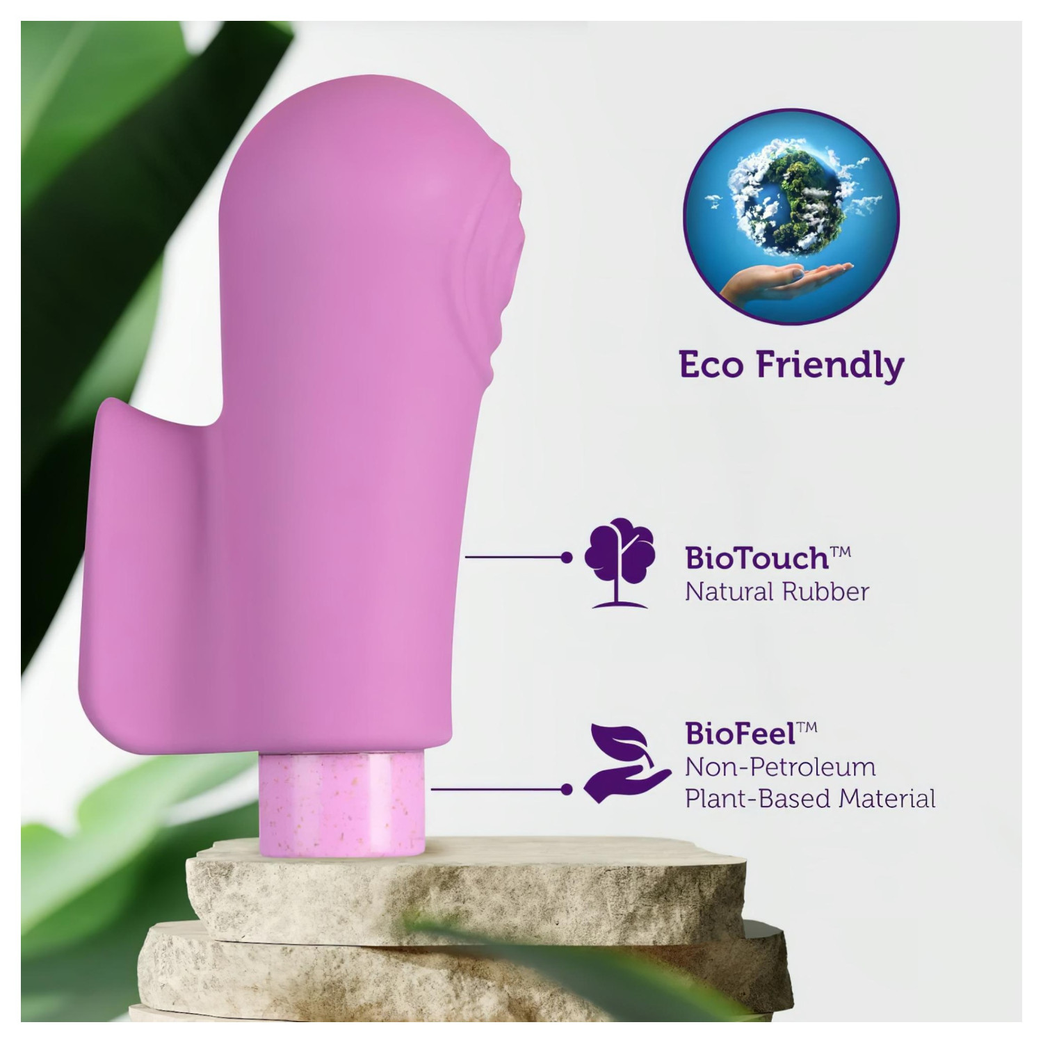 De Blush Gaia gaat niet alleen over genot, maar ook over respect voor het milieu. Deze ecobewuste vinger-vibrator is gemaakt van plantaardige bioplastic (BioFeel™) en natuurlijk rubber (BioTouch™), dat verantwoord en latexvrij verzameld is. Als je zowel genot als bewustzijn wilt ervaren, is deze vibrator voor jou gemaakt!