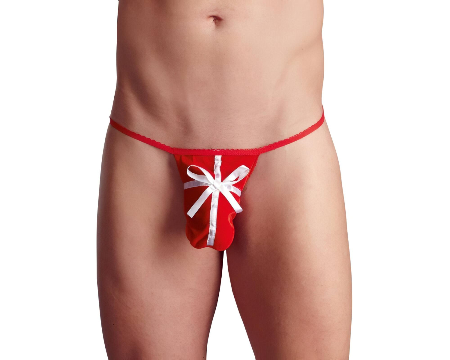 Geef jezelf cadeau - letterlijk! Rode fluwelen herenstring met een strik, zodat jij de meest sexy verrassing van de avond bent!