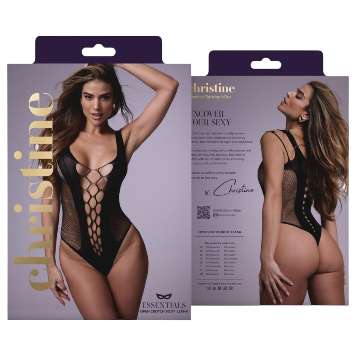 Leana zwarte bodystocking met open kruisje, sensueel schouderdetail en speels mesh patroon - perfect als je wilt stralen met een vrijgevochten, zelfverzekerde look die niemand weerstaat.