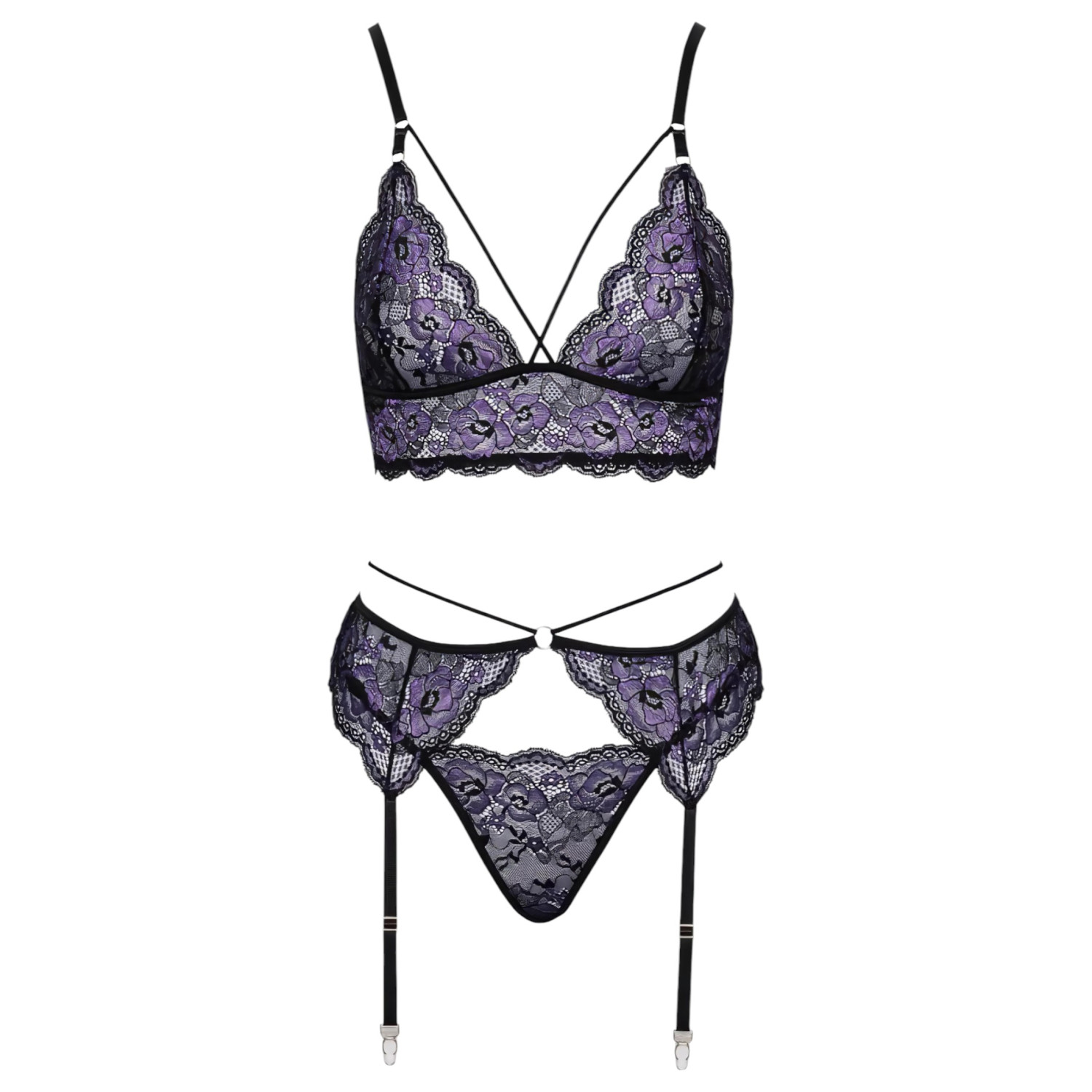 Laat je sensualiteit de vrije loop met deze prachtige 3-delige kanten lingerie set, die je gegarandeerd zal laten schitteren met z’n verfijnde details!