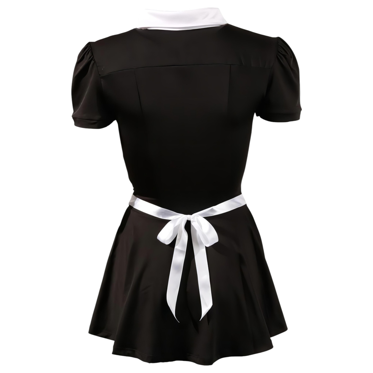 Deze schattige zwarte minijurk is helemaal geïnspireerd op de look van een ondeugende huishoudhulp en is perfect als je iets sexy én speels wilt dragen.