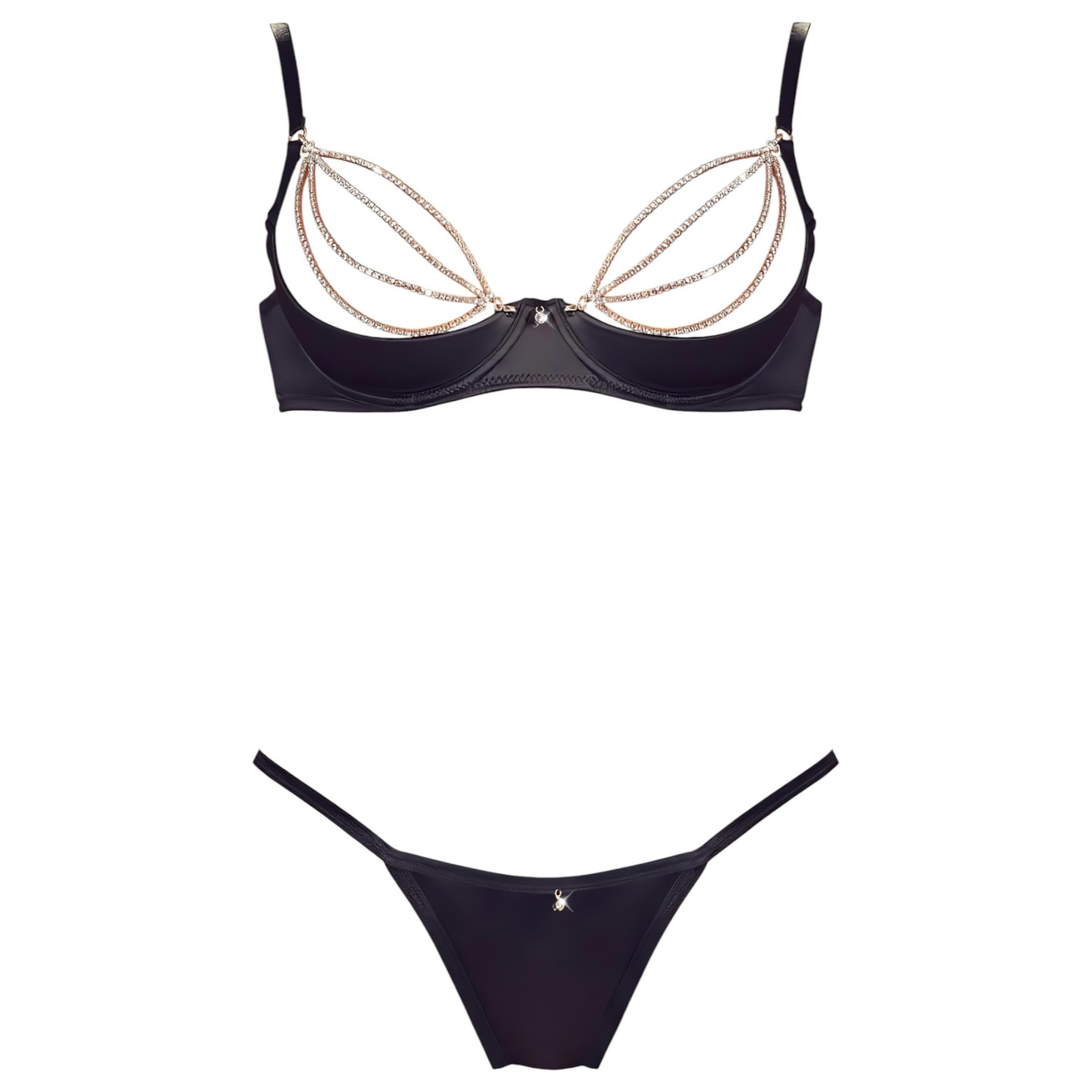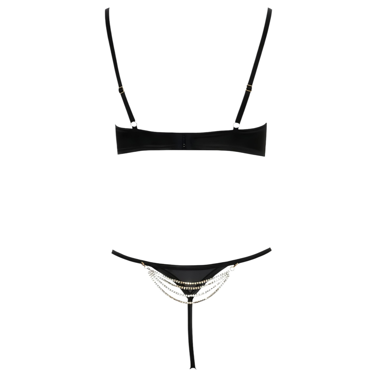 Cottelli - Satijnen Beha Set met Strass en Kettingen (Zwart) - 85B/L