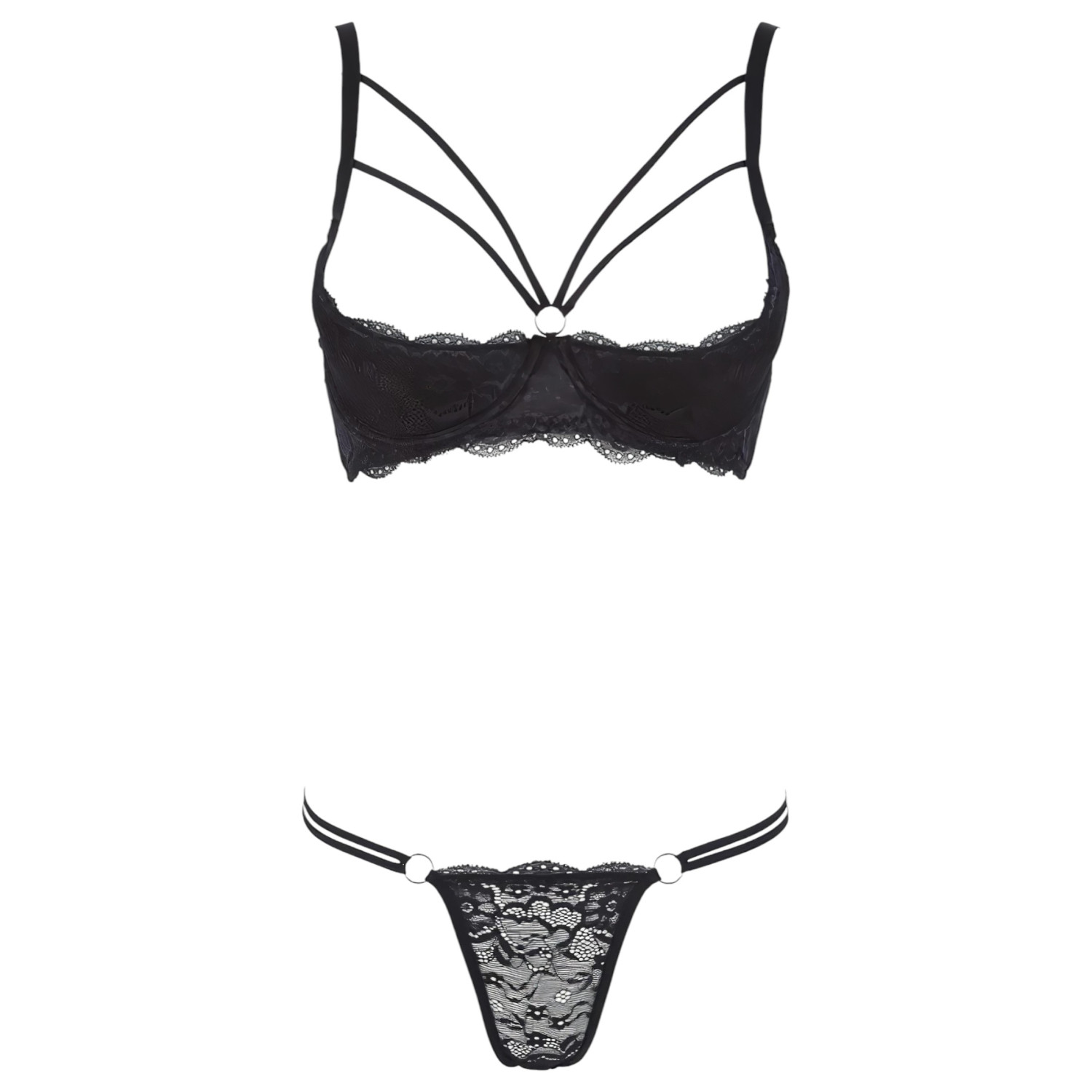 Exclusieve bustier set met sensuele kant en uitdagende details voor een onweerstaanbare look!