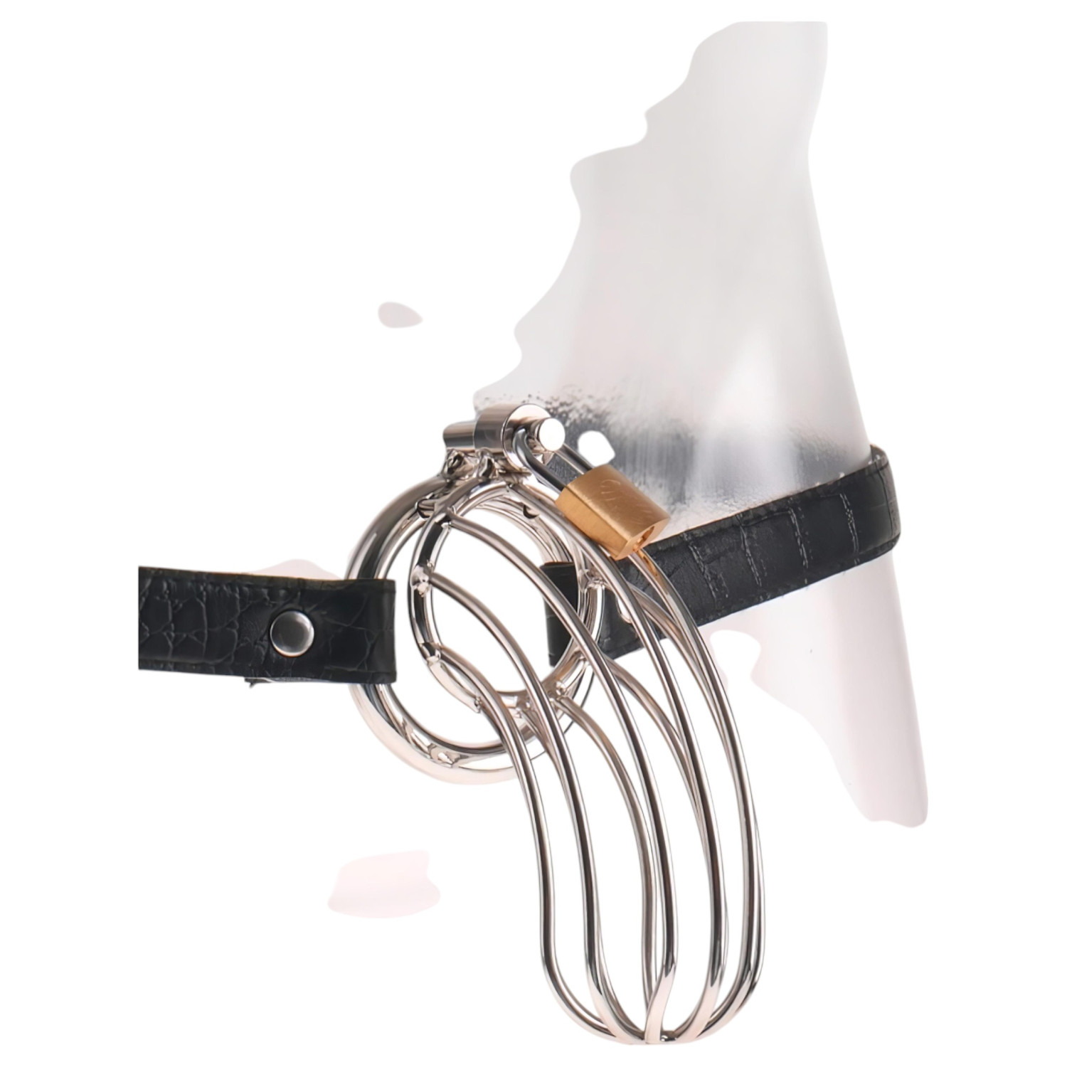 Sterk straalend staal omringt je penis terwijl deze opgewonden en verlangend probeert te ontsnappen.