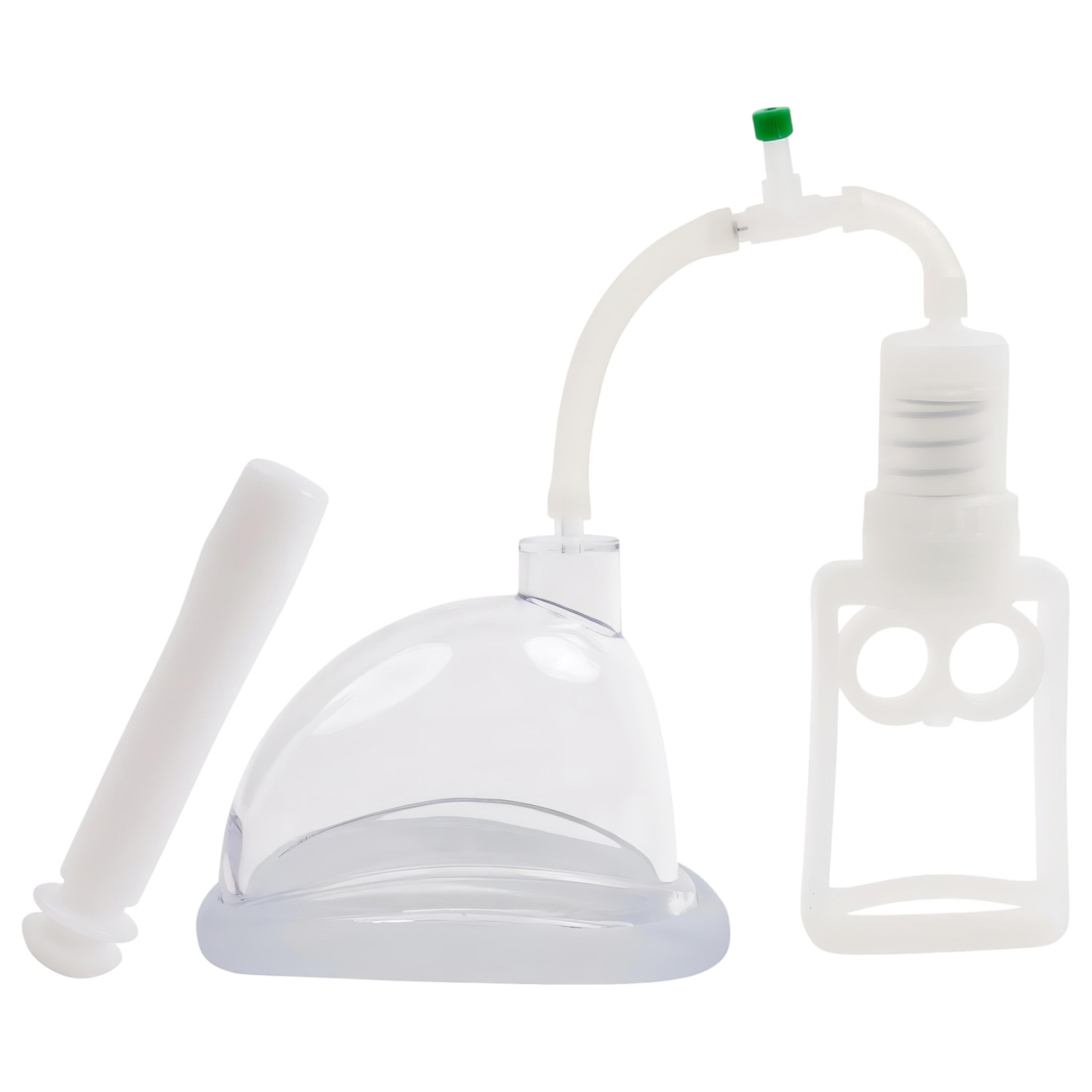 • Met de handige pomp (waar twee vingers op passen) bouw je langzaam wat vacuüm op - hierdoor zullen je clitoris en schaamlippen lichtjes opzwellen door de extra bloedtoevoer.