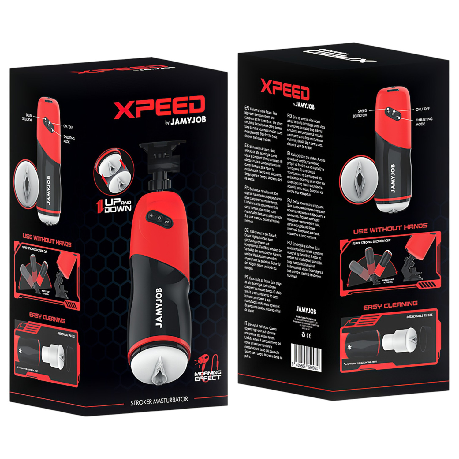 De JamyJob XPEED automatische stuwende masturbator voor mannen is een elegant, modern en technologisch geavanceerd apparaat dat een realistische, intense en op maat gemaakte ervaring biedt – nu met geluidseffecten voor een nog levensechter genot.