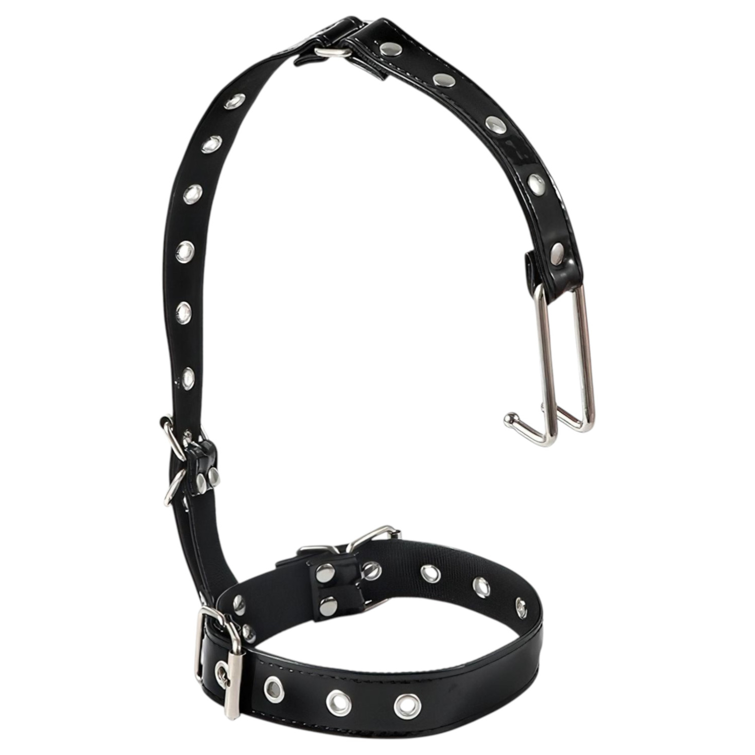 Betreed de wereld van LateToBed BDSM, waar controle, spanning en verlangen een nieuwe betekenis krijgen - deze halsband met neushaak is niet voor de verlegen types!