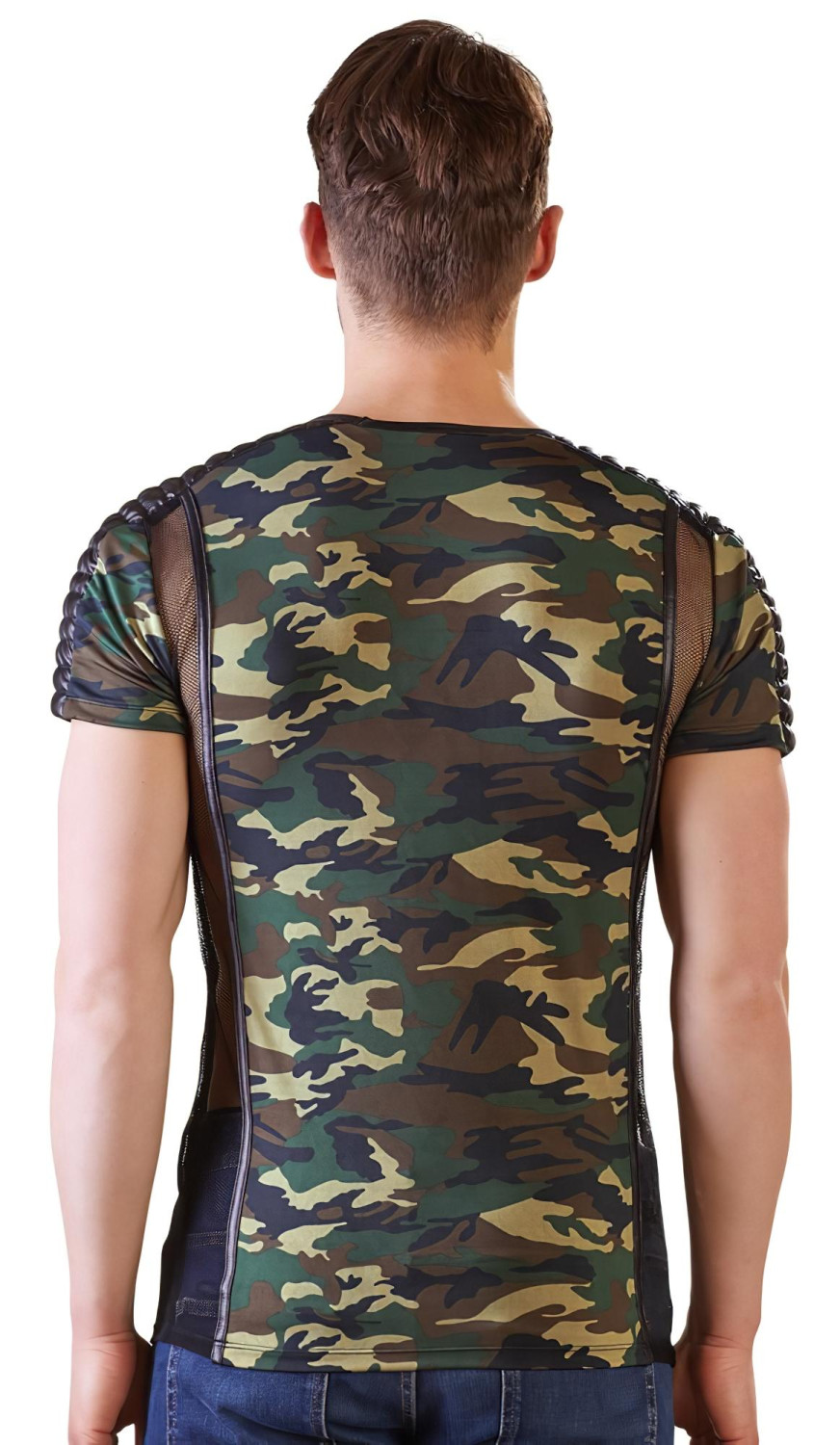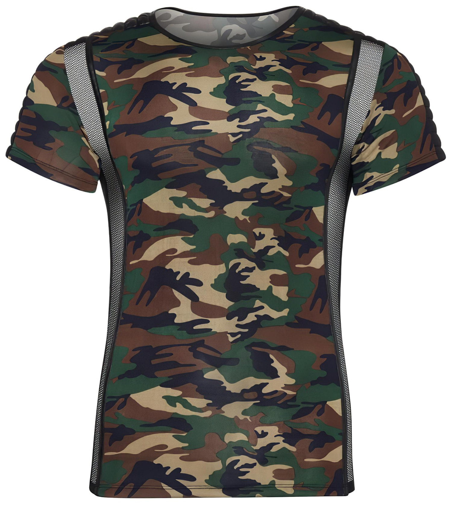 • 1 camouflage shirt met transparante mesh inzetstukken