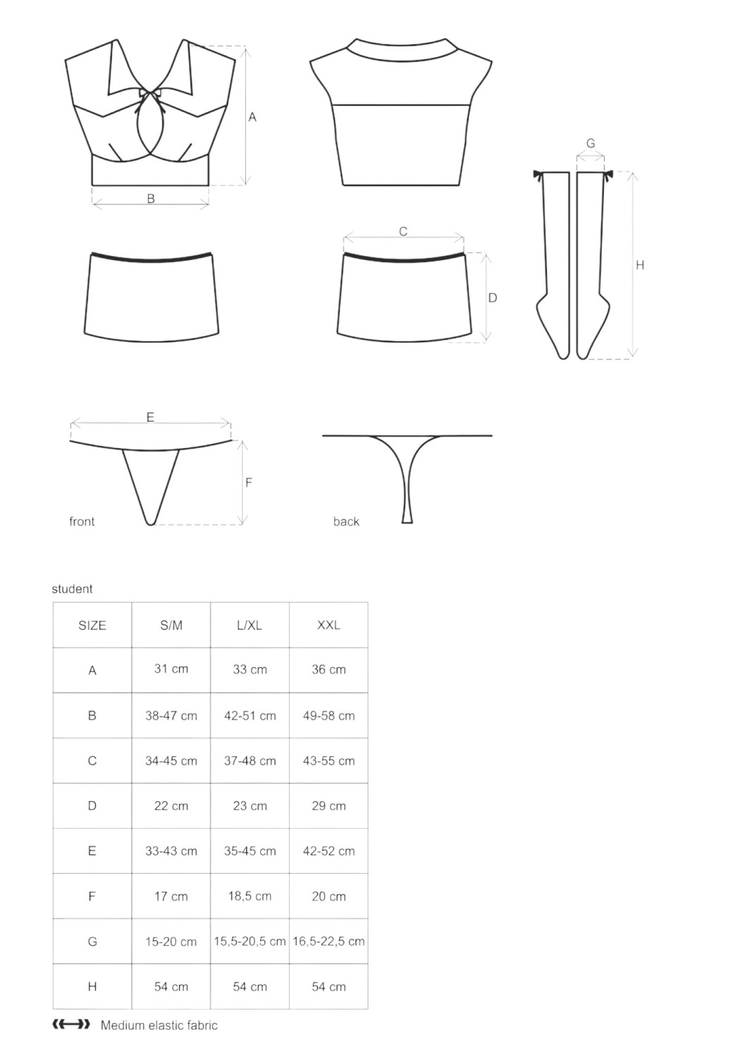 Obsessive Student - schoolgirl kostuum set (5-delig)