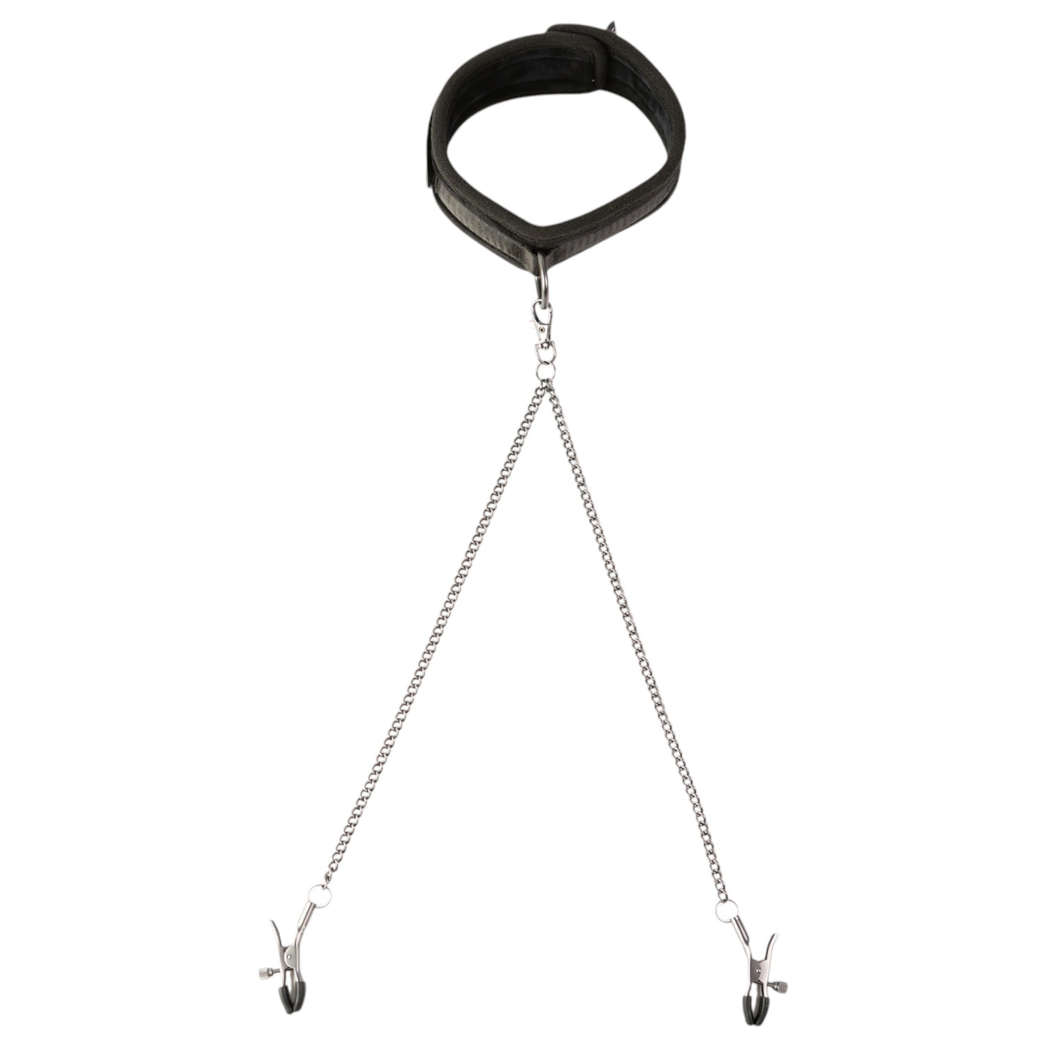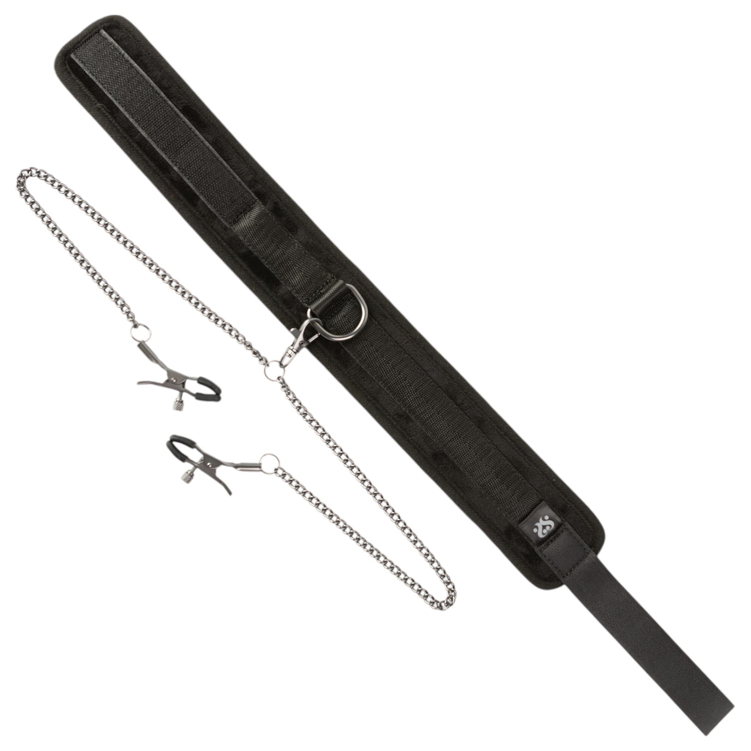 Deze prachtig afgewerkte halsband van fluweelzacht kunstleer sluit comfortabel om je nek en legt zo de perfecte basis voor speelse bondage-avonturen.