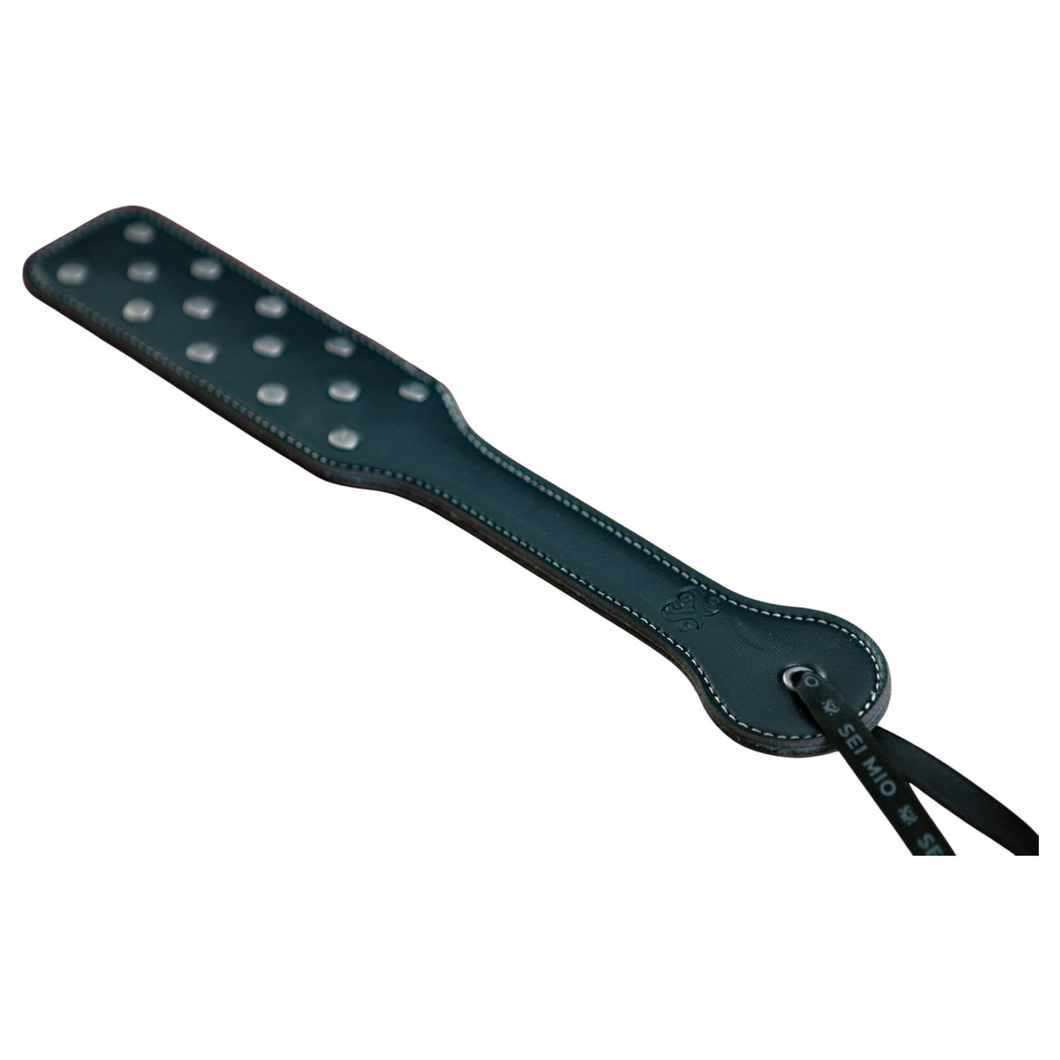 Laat uw dominantie de vrije loop met deze intense, met metaalnieten versierde peddel, die perfect kracht, controle en sensualiteit verenigt.