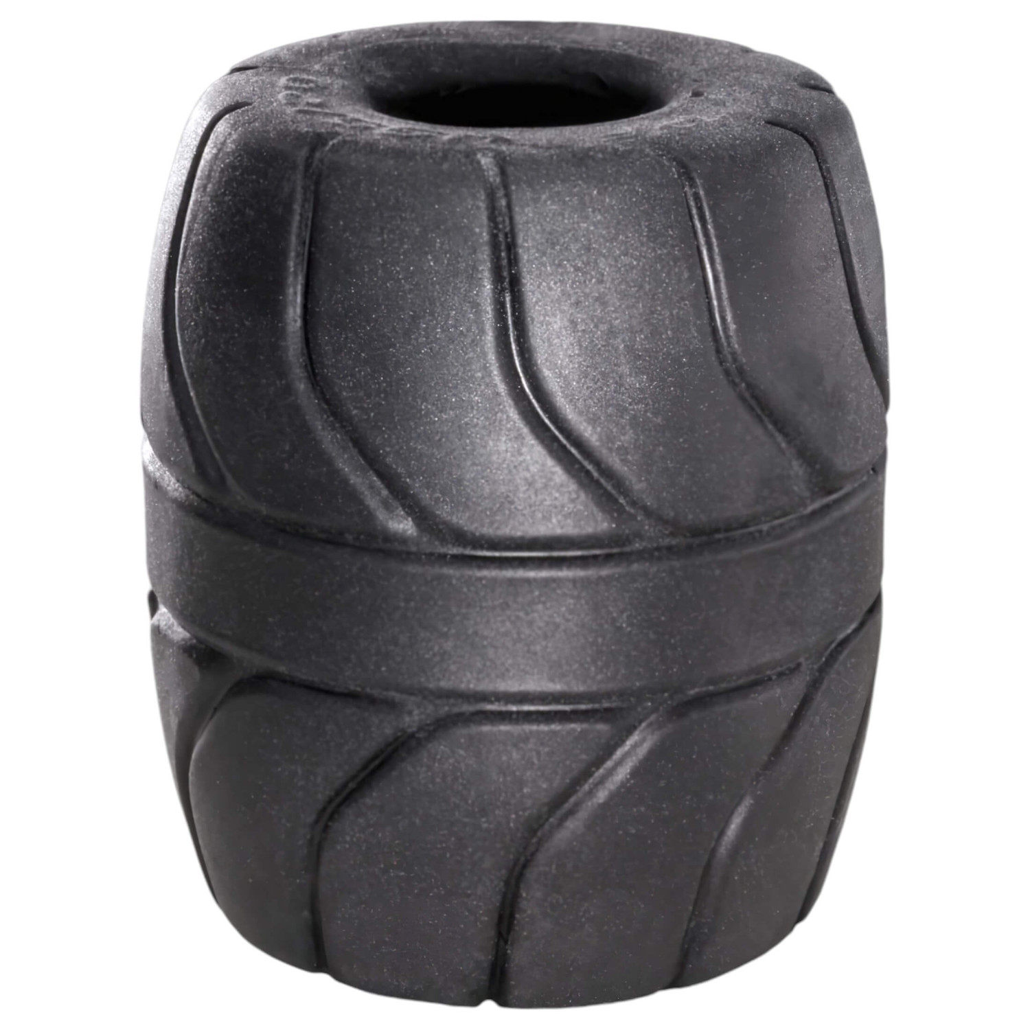 Steek twee vingers door de ring en rek hem rustig uit. Plaats hem aan de basis van je balzak en laat hem langzaam terugveren terwijl je je vingers eruit haalt. Dankzij de dikke wanden blijft hij stevig zitten en geeft je ballen een lekkere, subtiele stretch naar beneden.