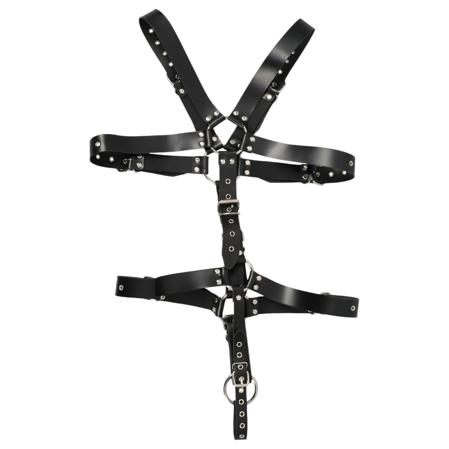 Ontdek de wilde, spannende wereld van BDSM met deze premium leren body voor mannen — afgewerkt met stoere studs en metalen ringen voor extra dominantie!