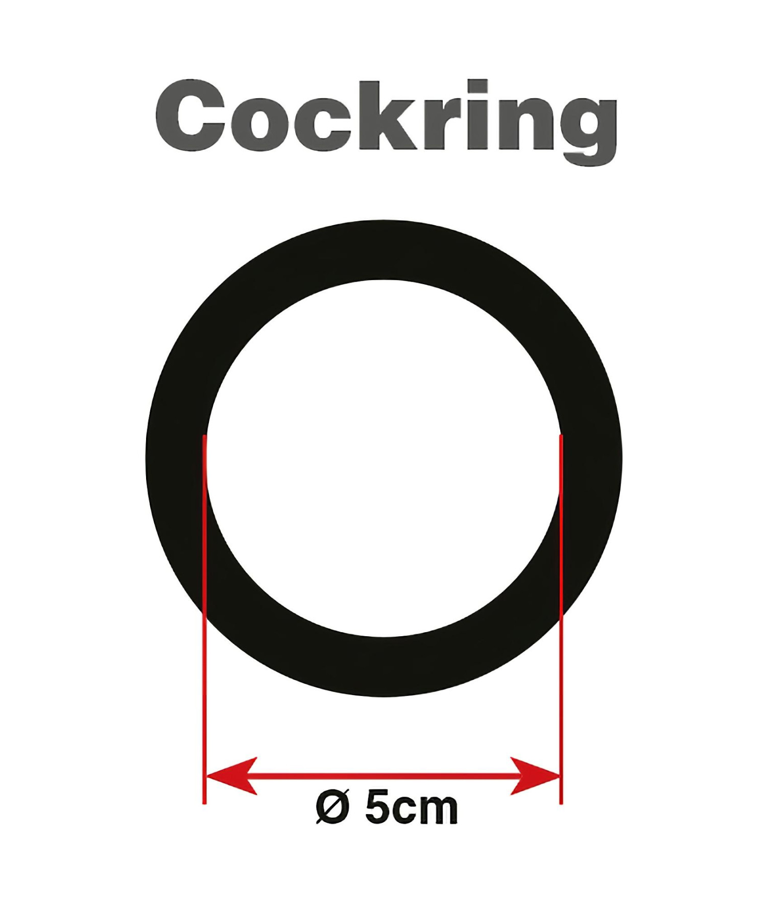 • Met metalen ringen, waaronder een penis-/balring van ongeveer 5 cm doorsnee, voor nog meer sensatie